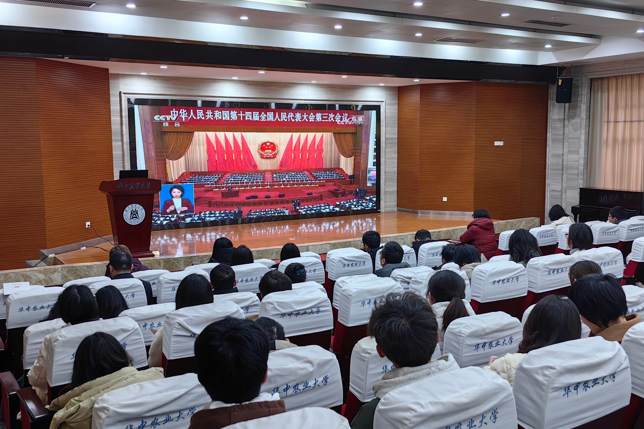 华农林肯学院师生收看直播(通讯员 唐方毅 供图)