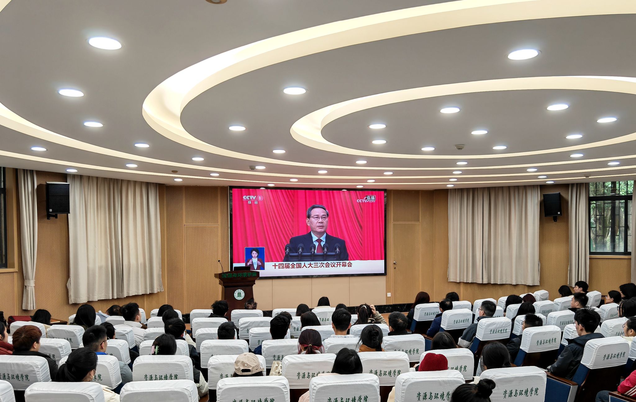 园艺林学学院师生收看直播( 记者 蒋朝常 摄)