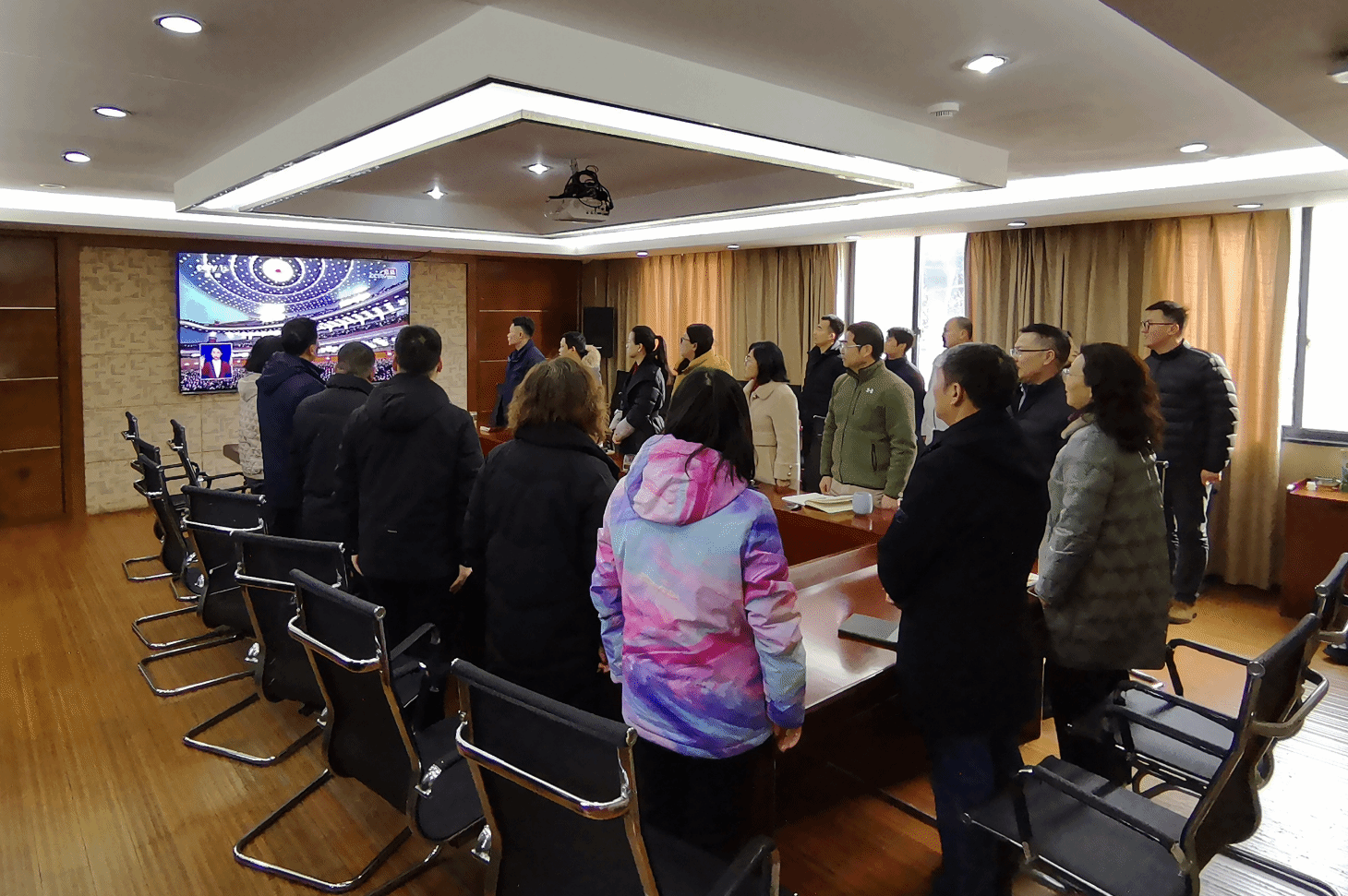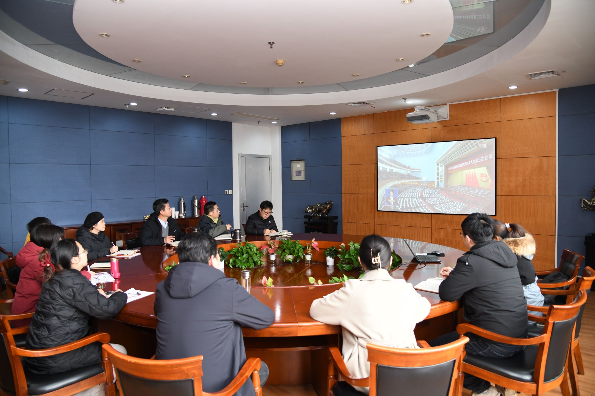 资产经营与后勤保障部教职工收看直播(通讯员 马文强 供图)