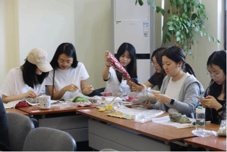 本次活动中,党支部巧妙地将党性教育元素融入实践全过程。支部书记丁玲老师在活动伊始强调:“我们亲手制作的不仅是养生艾锤,更是在锤炼服务人民的本领和清正廉洁的作风。艾草有驱虫避秽、扶正祛邪之效,党员同志亦当时刻保持清醒,抵御不良风气,弘扬清风正气。” 这番话语使活动具有深刻寓意。