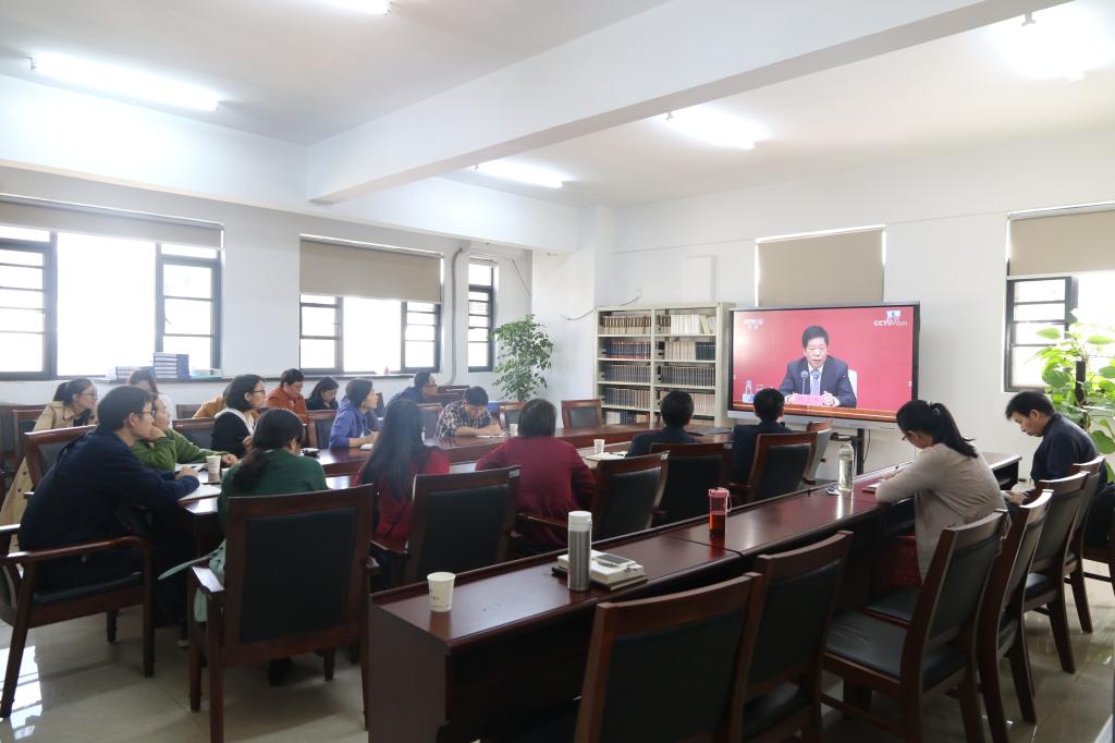 10月30日上午10点,马院组织师生在创业楼521会议室集中收看党的十九届五中全会精神新闻发布会直播。