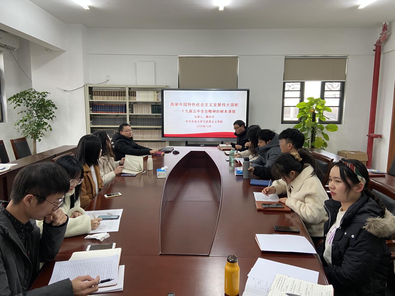 12月14日,马克思主义研究生第一党支部在创业楼521会议室,以“高举中国特色社会主义伟大旗帜——十九届五中全会精神的根本遵循”为主题,开展支部学习活动。支部书记唐尚书为全体支部成员讲授党课。