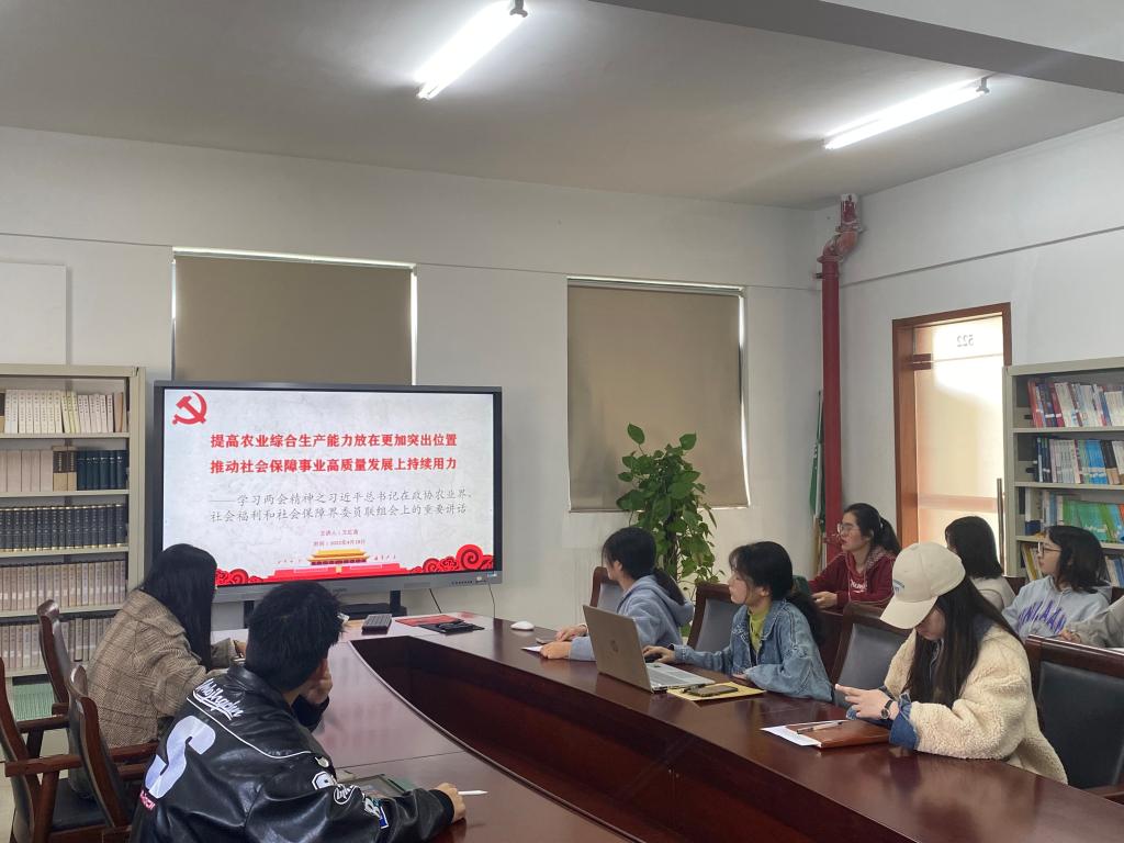 (支部成员王红苗同志领学习近平总书记在政协农业界、社会福利和社会保障界委员联组会上的重要讲话 黄子睿摄)