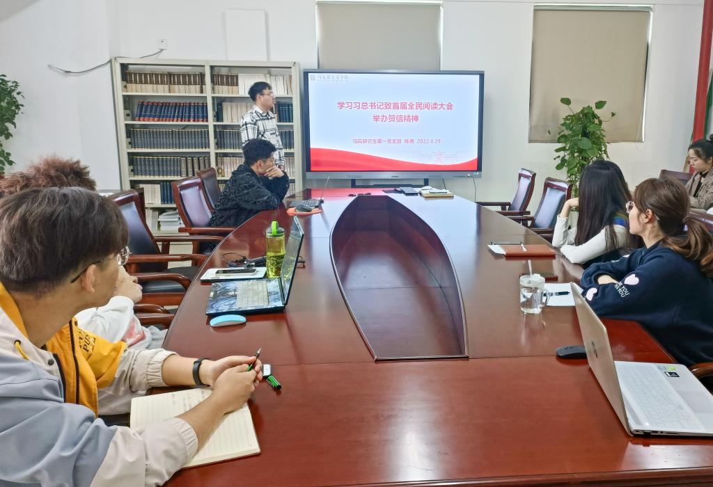 4月29日上午,马克思主义研究生第一党支部在创业楼521会议室开展专题理论学习党日活动,学习4月25日习近平总书记在中国人民大学考察时的讲话精神、习近平总书记致首届全民阅读大会举办贺信精神、3月31日中共中央政治局常务委员会会议精神。会议由支部副书记杜彧坤主持,支部全体同志参加了本次活动。