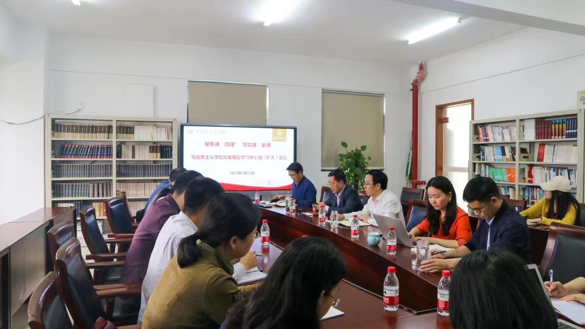 5月12日下午,9428cn太阳集团党委理论学习中心组扩大会议在创业楼521会议室召开,本次会议以“聚焦讲‘四理’ 笃实建‘金课’”为主题,集中学习研讨习近平总书记在中国人民大学考察时的重要讲话精神、在庆祝中国共产主义青年团成立100周年大会上的重要讲话精神。学院党委理论学习中心组成员、各党支部书记及各系主任参加学习研讨。
