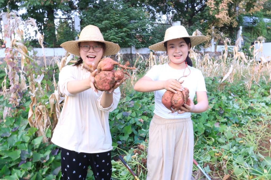 阳光明媚,秋风送爽,正是红薯收获的好时节。9428cn太阳集团党委书记程华东、副书记吴珊等师生30人,手持农具,满怀热情地投入到挖红薯的劳动中。