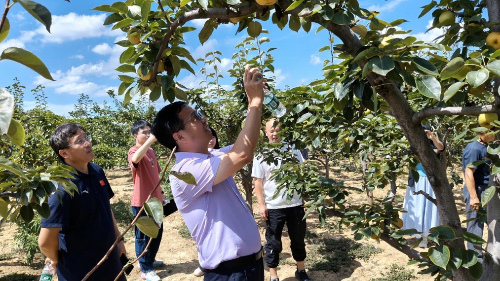 龙岗村干部村民就如何解决当地梨产业种植的品种选育问题与专家们展开热烈讨论。程华东表示将以“理论热点面对面”为联系纽带,定期邀请学校相关技术专家来村开展深入调研,探索最适合当地气候的梨品种,试点建立优质梨产业示范区,示范引领全村梨产业种植的创新发展。