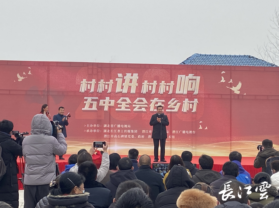 为了迅速把党的十九届五中全会精神,尤其是惠民富民的好政策、新愿景宣讲到农民群众的心坎上。今天下午(12月7日),湖北省“村村讲村村响 五中全会在乡村”主题宣讲活动在潜江市高石碑镇老堤村文化广场启动。