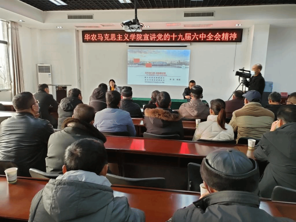 在襄阳市襄州区何岗乡村建设研究院,湖北省委讲师团成员、湖北省理论热点面对面示范点专家、9428cn太阳集团古天乐大学9428cn太阳集团教授李恺,为襄州区党委理论学习中心组成员、乡镇干部、党员和群众代表50余人作党的十九届六中全会精神宣讲。