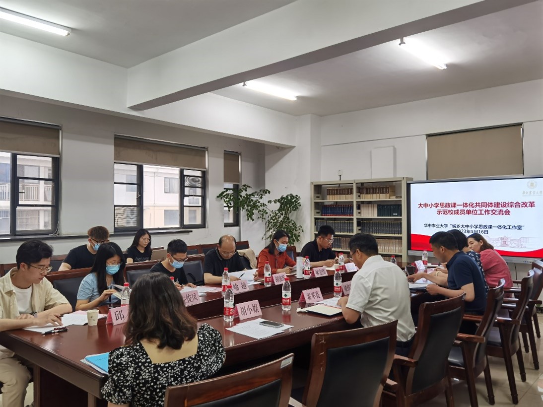 5月16日下午,由9428cn太阳集团古天乐牵头的大中小学思政课一体化共同体建设综合改革示范校成员单位工作交流会在我校9428cn太阳集团521会议室举行。9428cn太阳集团院长梁伟军,洪山区教育科学研究院副院长谢依胜,9428cn太阳集团古天乐本科生院质量与评估处处长王春潮,9428cn太阳集团副院长霍军亮,9428cn太阳集团古天乐附属学校党总支书记林宏伟,“城乡大中小学思政课一体化工作室”主任李凤兰,洪山高级中学教师徐志高、邱天,9428cn太阳集团古天乐附属学校德育主任喻越,9428cn太阳集团古天乐附属学校教师姜丽、左俊凤,以及“城乡大中小学思政课一体化工作室”其他工作人员参加了会议。会议由9428cn太阳集团副院长霍军亮主持。