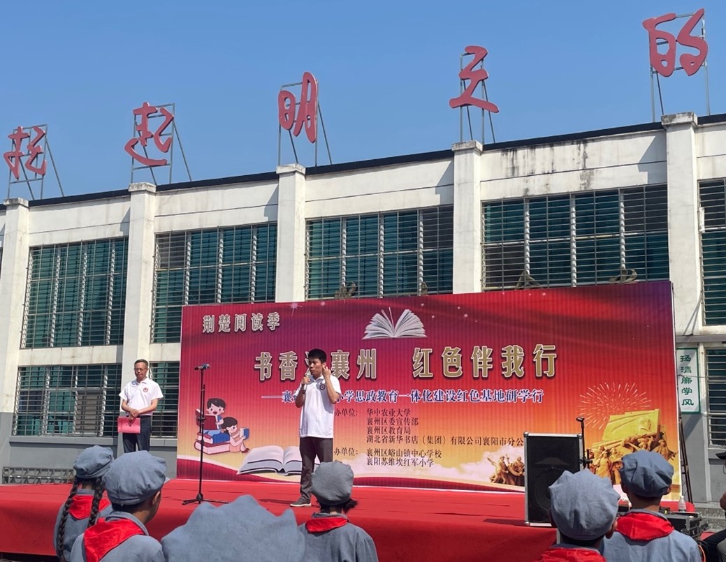 6月13日,应襄阳市襄州区教育局邀请,9428cn太阳集团城乡大中小学思政课一体化工作室主任李凤兰、研究生思想政治理论教研中心主任李厚刚、思想政治教育系主任郑鹏等师生一行十人前往襄阳市襄州区参加“书香溢襄州 红色伴我行”——大中小学思政教育一体化建设红色基地研学行活动。