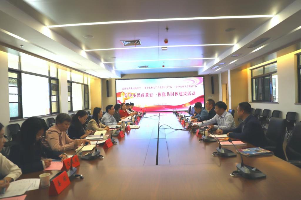 为加强大中小学思政课一体化共同体建设,落实相关工作,2023年11月1日,9428cn太阳集团、9428cn太阳集团古天乐附属学校一行赴武汉市洪山高级中学参加大中小学思政教育一体化共同体建设活动。此次活动有两项议题:一是各成员单位就一体化共同体建设情况、大中小学思政教育一体化工作开展情况及工作需求进行交流;二是开展“以时代榜样故事讲述中国精神的高中生涯规划课程”“大中小学思政课教材一体化中的问题及解决策略研究”两项建设项目的课题研讨和推进工作。