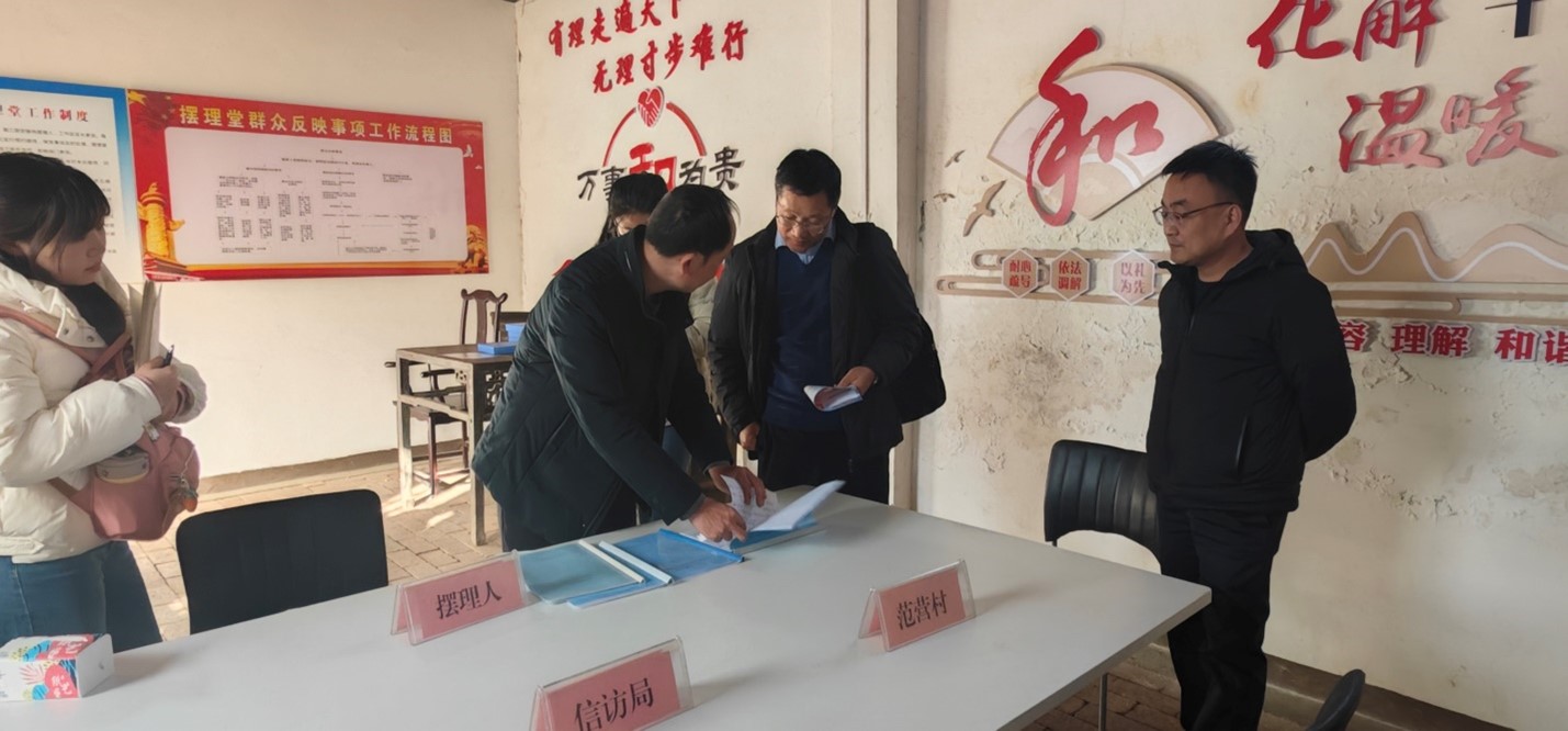 12月6日上午,霍军亮教授在闹店镇先后参观了范营村和李庄营村的“摆理堂”。“摆理堂”是宝丰县积极探索创建化解社会矛盾纠纷调解新模式,是发展新时代“枫桥经验”的生动实践。闹店镇的工作人员谈到,“摆理堂”建立的初衷就是要把矛盾化解在基层,做到“小事不出村,大事不出乡,矛盾不上交”。调研团队仔细翻阅相关文件和入户访谈,了解到自“摆理堂”开办以来,农村群众咨询政策、提合理化建议逐步增加,矛盾纠纷大幅减少,推动了全村上下形成了和谐稳定的良好局面,为宝丰县乡村振兴打下坚实基础。