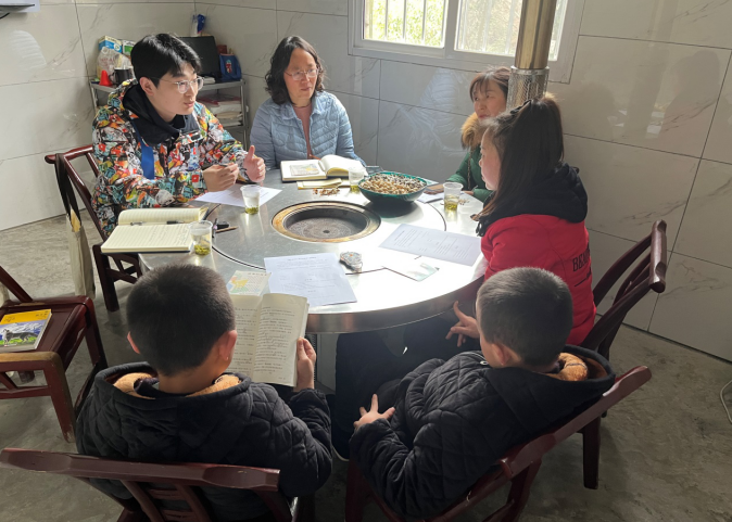 会后,程华东一行前往安乐井小学,回访参加2023年“安乐井小学生走进华农”系列活动的同学们。调研组与同学们进行了亲切的交流互动,鼓励他们脚踏实地、志在千里。李凤兰教授带领的访谈小组还前往参加“城乡大中小 亲子共读书”活动的同学家中进行家访。