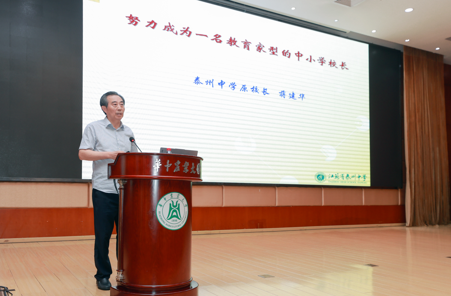 第十一届全国人大代表、江苏省泰州中学原校长蒋建华分析了优秀教育家必须具备的外在特征和内在条件,提出要做“五官端正、五心兼修、五味俱全、五力齐备、五项全能”的“五五”牌校长,并从六个方面阐述了炼造新时代名校长、教育家型校长的关键点和着力点,突出强调要大力弘扬教育家精神,做好学生的“掌舵人”“掌门人”“掌勺人”。