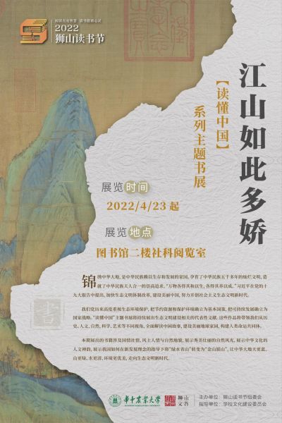 2022狮山读书节开幕之际,学校在图书馆举办“江山如此多娇”读懂中国系列主题书展。